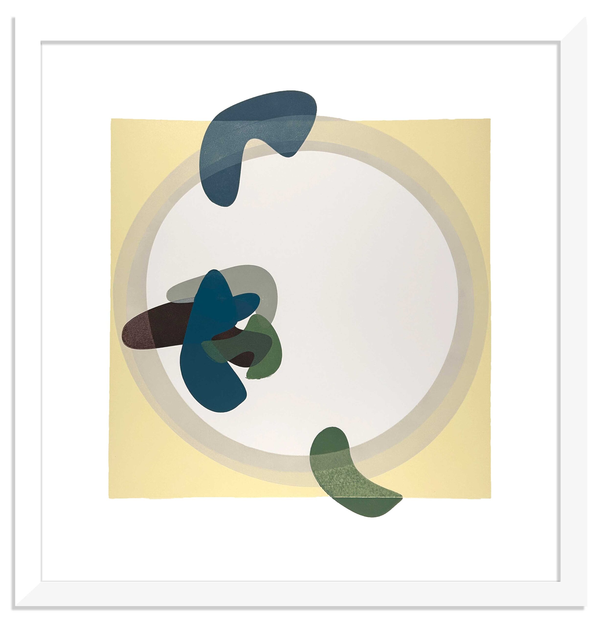 Wood block monoprint on 310 gsm somerset sized paper, hand printed by the artist, ready framed, Image size 78x78cm, Paper size 78x78cm, Framed size, 80x80cm.
