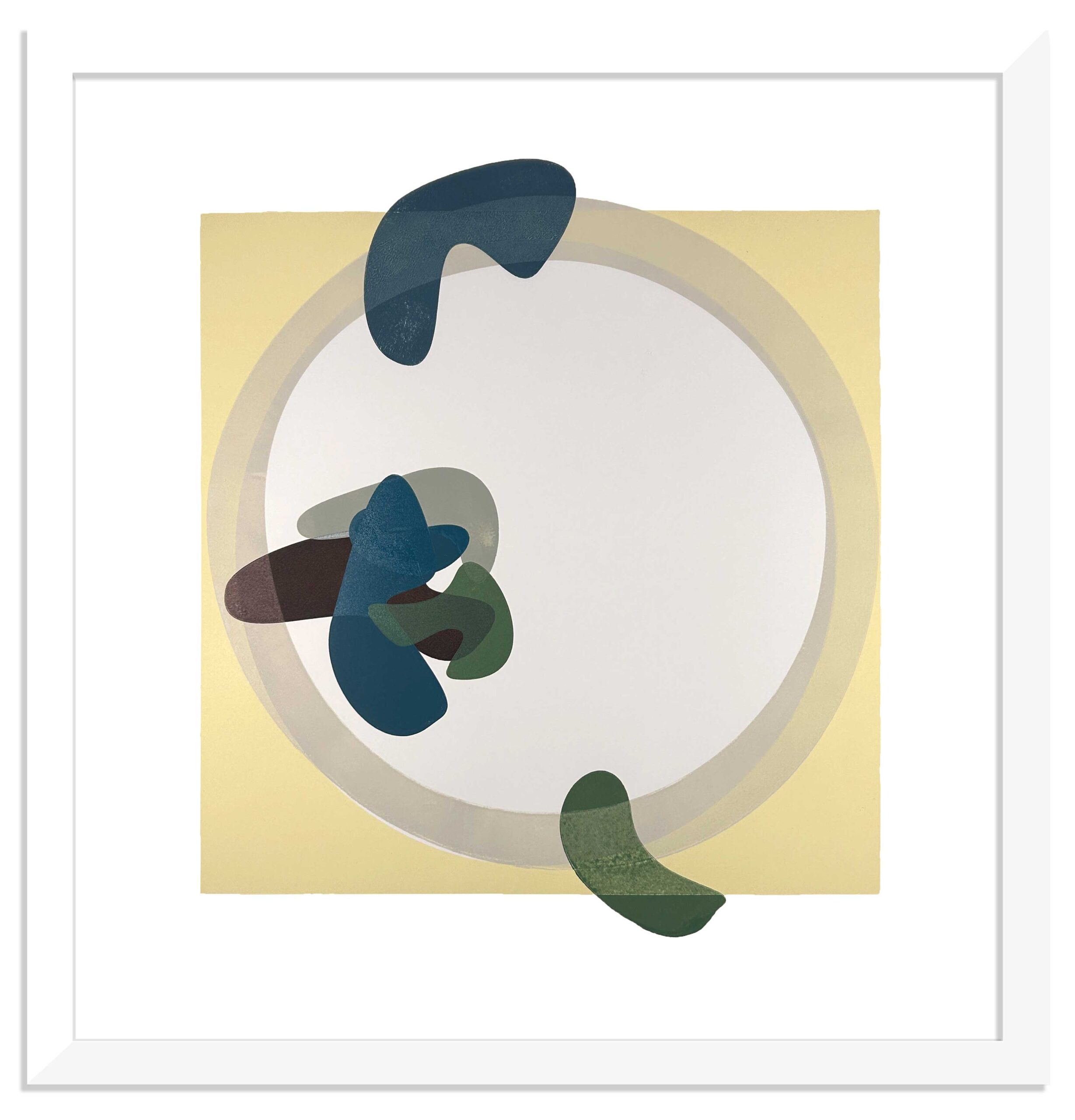 Wood block monoprint on 310 gsm somerset sized paper, hand printed by the artist, ready framed, Image size 78x78cm, Paper size 78x78cm, Framed size, 80x80cm.