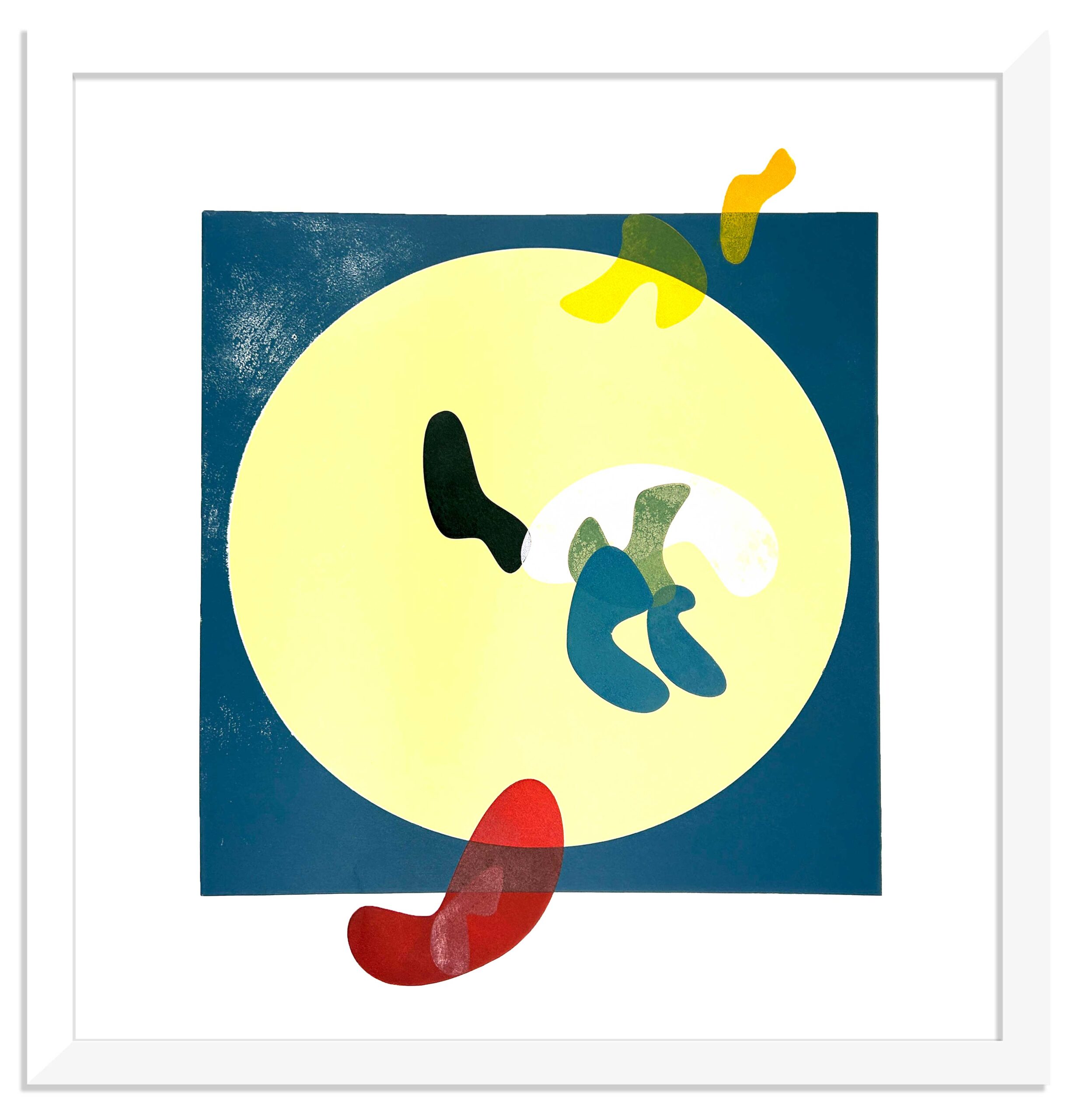 Wood block monoprint on 310 gsm somerset sized paper, hand printed by the artist, ready framed, Image size 78x78cm, Paper size 78x78cm, Framed size, 80x80cm.