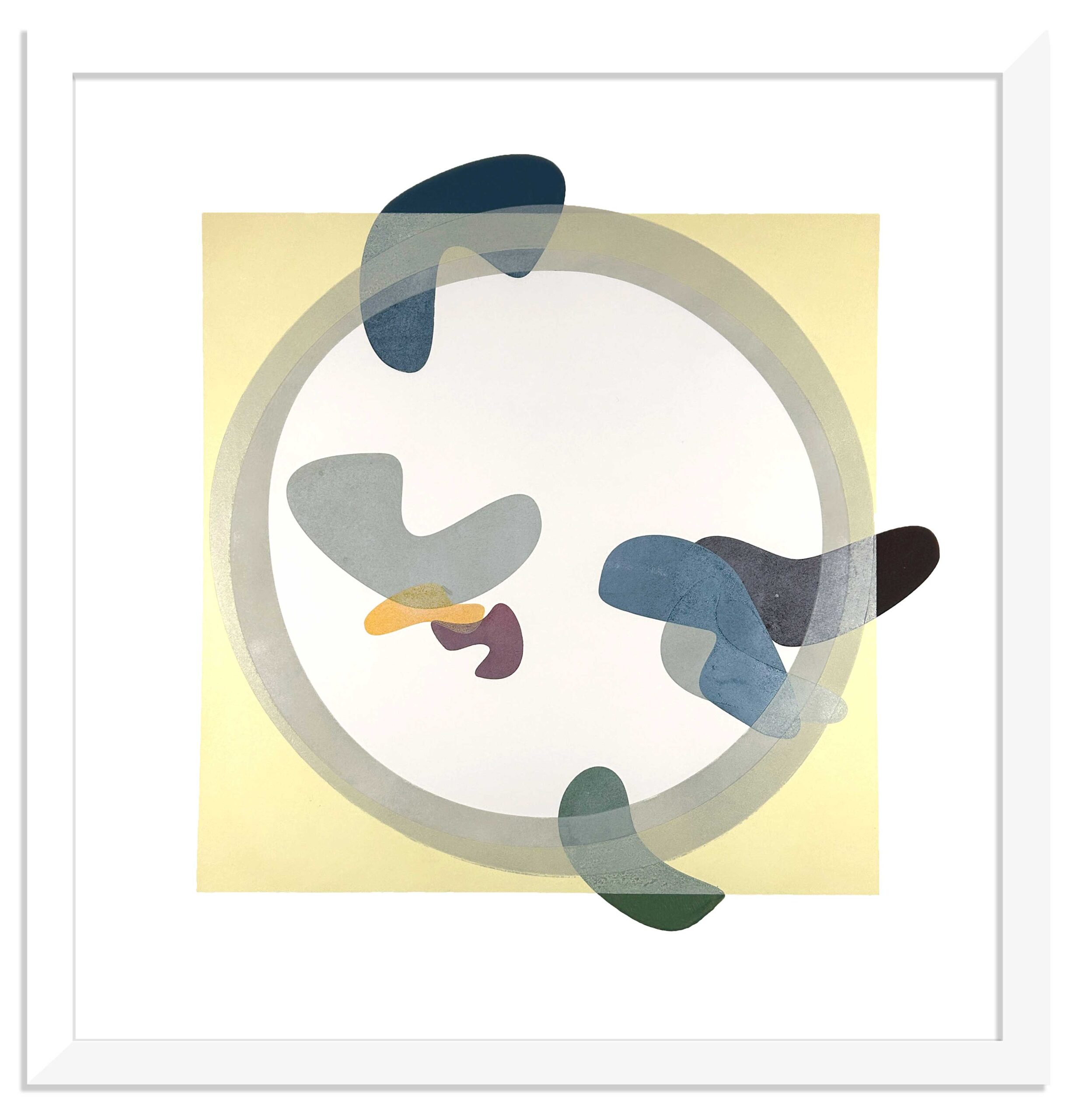 Wood block monoprint on 310 gsm somerset sized paper, hand printed by the artist, ready framed, Image size 78x78cm, Paper size 78x78cm, Framed size, 80x80cm.